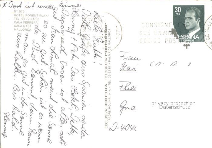 old postcard Cala d Or Cala Ferrera Hotel Ponent Playa postalisch gelaufen
