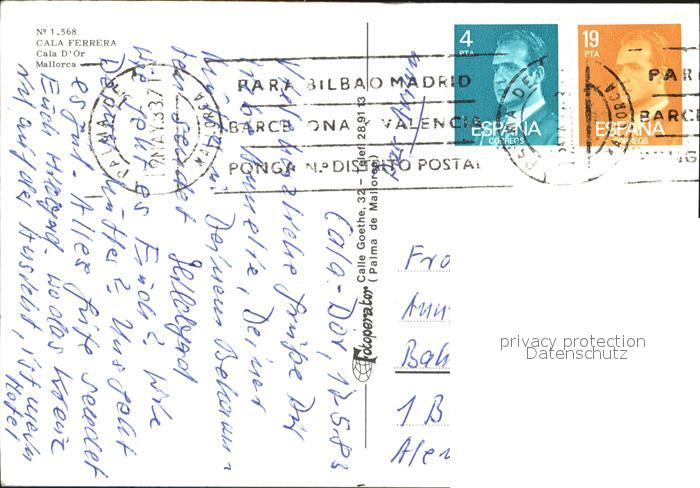 old postcard Cala d Or Cala Ferrrera Hotel-Ponent Playa postalisch gelaufen Erhaltung siehe scans [LiesaD40]