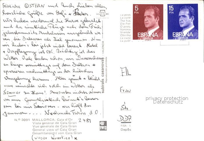 old postcard Cala d Or Fliegeraufnahme Strand Bucht postalisch gelaufen Erhaltung siehe scans [LiesaD40]