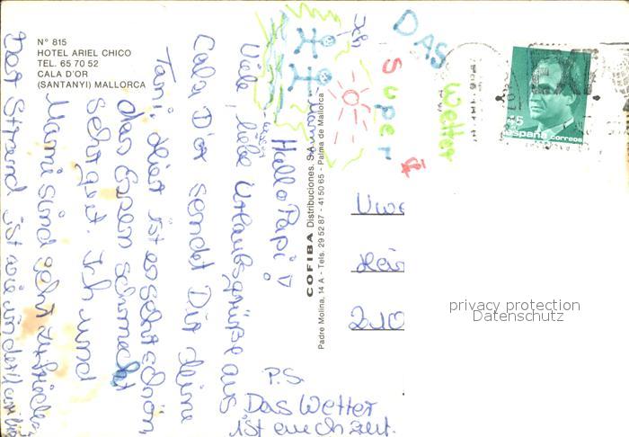 old postcard Cala d Or Hotel Ariel Chico postalisch gelaufen Erhaltung siehe scans