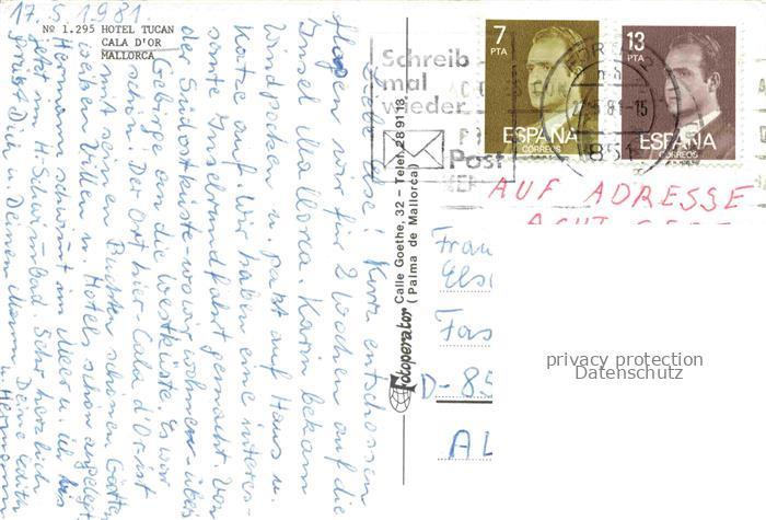 74148780 old postcard Cala d Or Mallorca ES Hotel Tucan Swimming Pool postalisch gelaufen Erhaltung siehe scans [FriedD77] KatCode: 11510