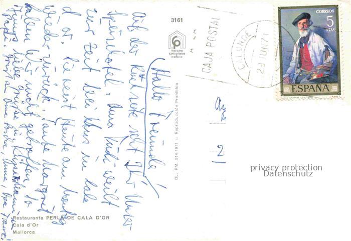 74005793 old postcard Cala d Or Mallorca ES Restaurant Perla Cala d’Or postalisch gelaufen Erhaltung siehe scans [FriedD77] KatCode: 11510
