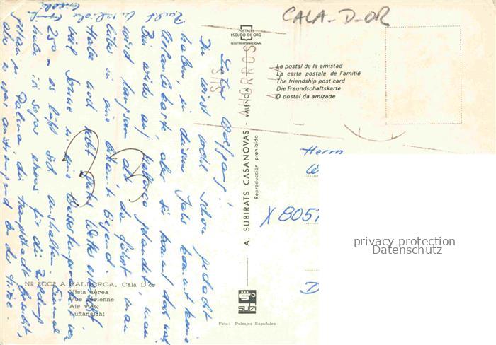 74142171 old postcard Cala d Or Mallorca ES Vista aérea postalisch gelaufen Fliegeraufnahme Erhaltung siehe scans [FriedD77] KatCode: 11510