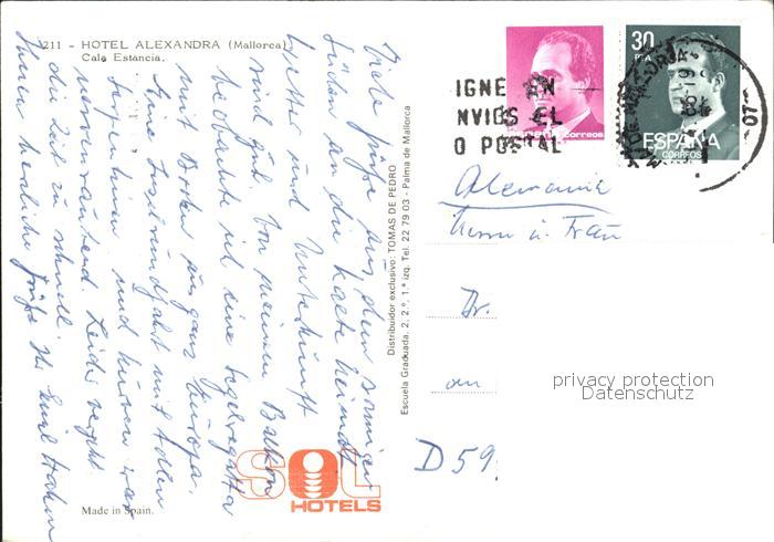 old postcard Cala Estancia Hotel Alexandra Promenade Swimmingpool postalisch gelaufen Erhaltung siehe scans