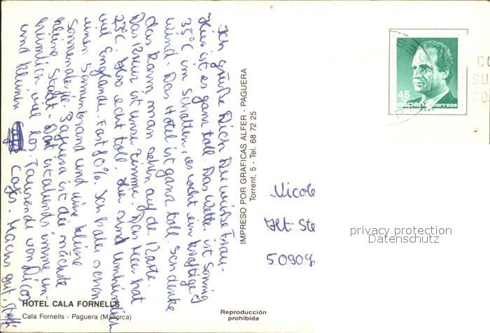 old postcard Cala Fornells Fliegeraufnahme Hotel Cala Fornells postalisch gelaufen Erhaltung siehe scans
