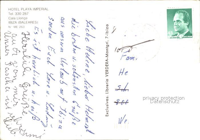old postcard Cala Llonga Hotel Playa Imperial postalisch gelaufen Erhaltung siehe scans