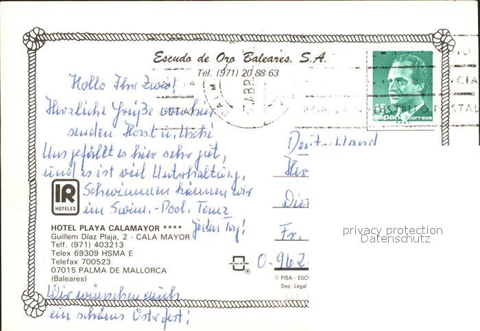 old postcard Cala Mayor Hotel Playa Calamayor postalisch gelaufen Erhaltung siehe scans