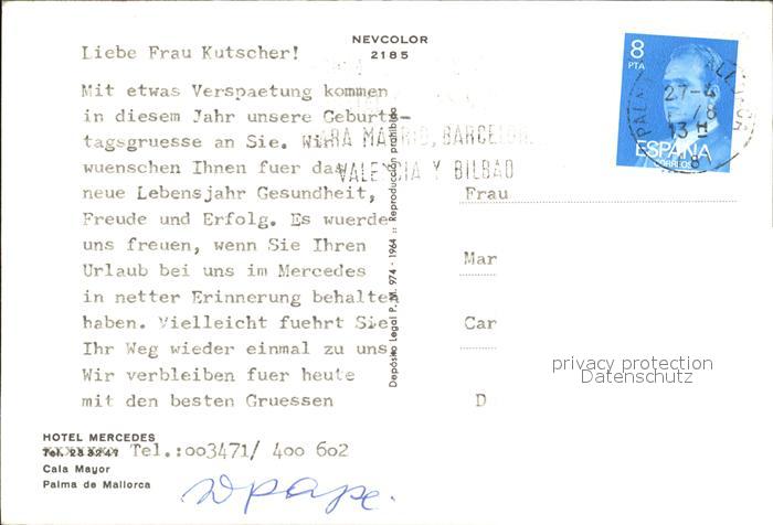 old postcard Cala Mayor Hotel Poolterrasse postalisch gelaufen Erhaltung siehe scans