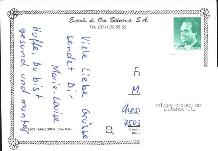 old postcard Cala Millor Mallorca postalisch gelaufen Erhaltung siehe scans [NatalD47 kv014box]