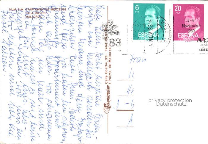 old postcard Cala Millor Mallorca Apartamentos Mercedes postalisch gelaufen Erhaltung siehe scans