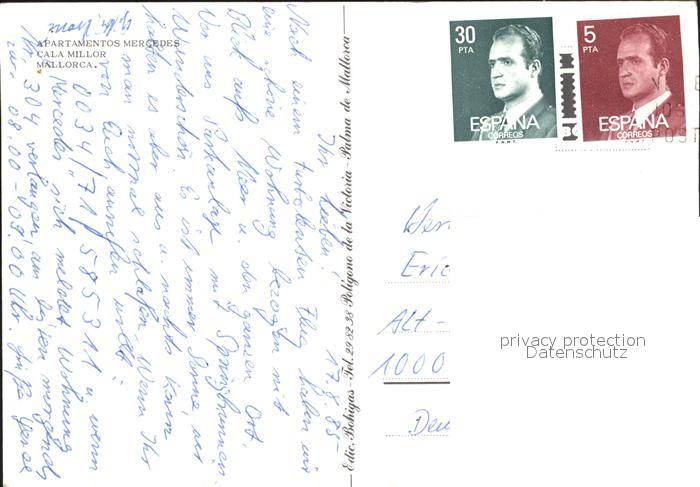 old postcard Cala Millor Mallorca Apartementos Mercedes postalisch gelaufen Erhaltung siehe scans