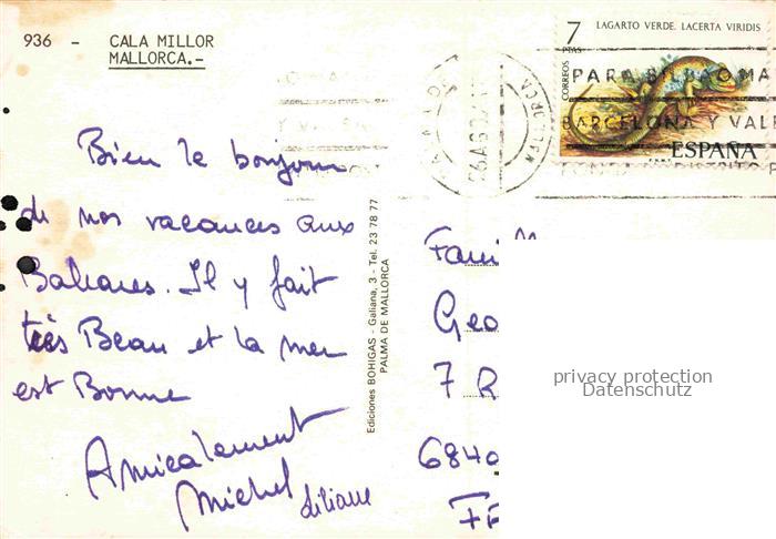 74092626 old postcard CALA MILLOR Mallorca ES Fliegeraufnahme postalisch gelaufen Erhaltung siehe scans [WerneD78] KatCode: 11510