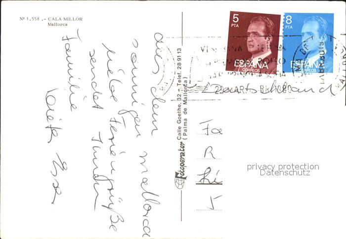old postcard Cala Millor Mallorca Fliegeraufnahme postalisch gelaufen Erhaltung siehe scans [AndreD76 kv012box]