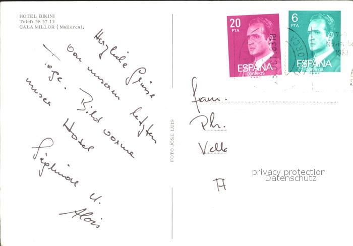 old postcard Cala Millor Mallorca Hotel Bikini Swimmingpool postalisch gelaufen Erhaltung siehe scans