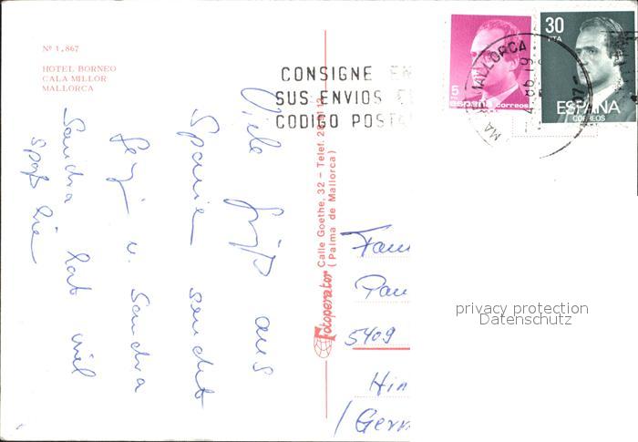 old postcard Cala Millor Mallorca Hotel Borneo postalisch gelaufen Erhaltung siehe scans