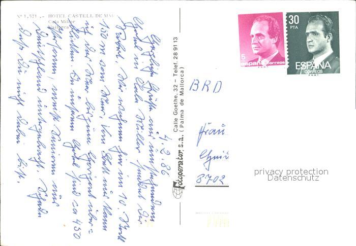 old postcard Cala Millor Mallorca Hotel Castell De Mar postalisch gelaufen Erhaltung siehe scans