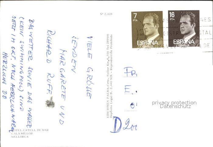 old postcard Cala Millor Mallorca Hotel Castell de Mar Strand postalisch gelaufen Erhaltung siehe scans