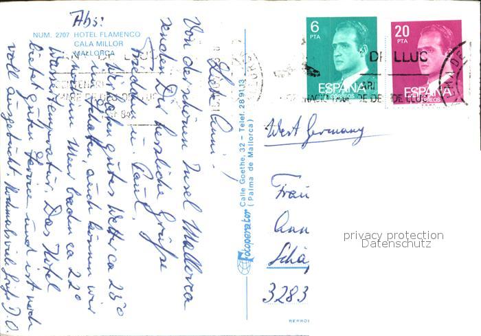 old postcard Cala Millor Mallorca Hotel Flamenco postalisch gelaufen Erhaltung siehe scans [LiesaD40]