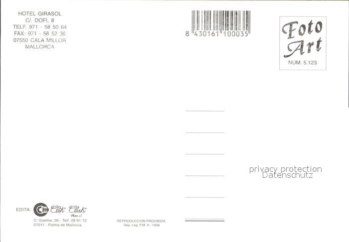 Cala Millor Mallorca Hotel Girasol postalisch nicht gelaufen Erhaltung siehe scans [LiesaD40]