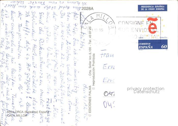old postcard Cala Millor Mallorca Hotel Hipocampo postalisch gelaufen Erhaltung siehe scans [LiesaD40]