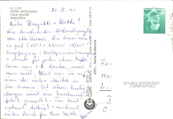 Cala Millor Mallorca Hotel Hipocampo Strand Zimmer Swimmingpool postalisch nicht gelaufen Erhaltung siehe scans
