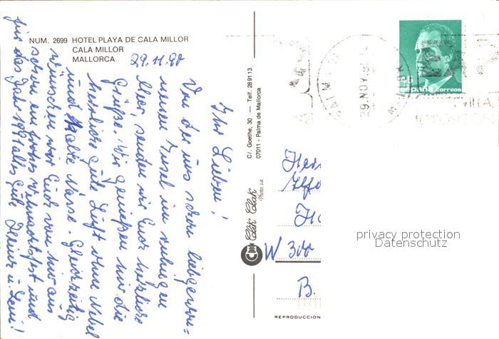 old postcard Cala Millor Mallorca Hotel Playa de Cala Millor postalisch gelaufen Erhaltung siehe scans