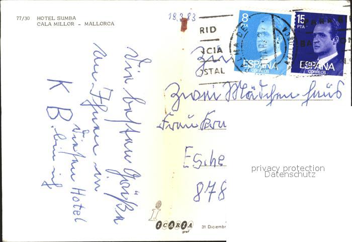 old postcard Cala Millor Mallorca Hotel Sumba postalisch gelaufen Erhaltung siehe scans