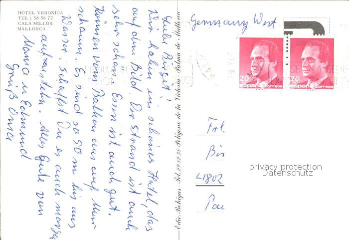 old postcard Cala Millor Mallorca Hotel Veronica postalisch gelaufen Erhaltung siehe scans