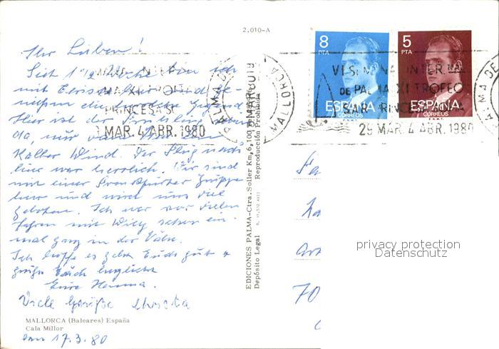 old postcard Cala Millor Mallorca Hotelanlage Swimming Pool Strand postalisch gelaufen Erhaltung siehe scans
