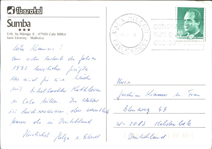 old postcard Cala Millor Mallorca Iberotel Sumba Piscina Playa postalisch gelaufen Erhaltung siehe scans