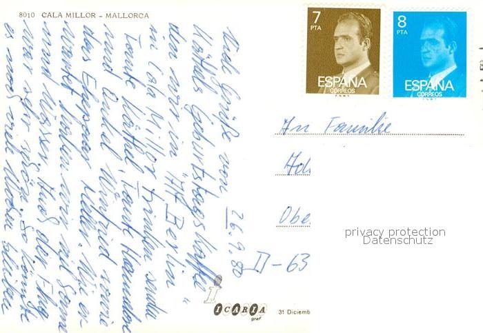 old postcard Cala Millor Mallorca Strand Hotelanlagen postalisch gelaufen Erhaltung siehe scans [KathaD81]