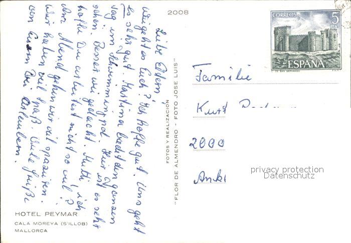 old postcard Cala Moreya Hotel Peymar postalisch gelaufen Erhaltung siehe scans