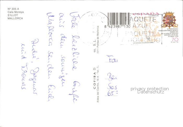 old postcard Cala Moreya Panorama postalisch gelaufen Erhaltung siehe scans