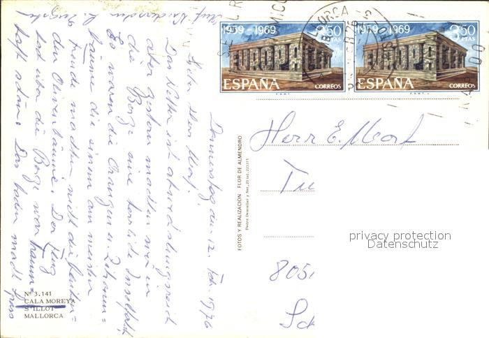 old postcard Cala Moreya s Illot Strand Terrasse postalisch gelaufen Erhaltung siehe scans