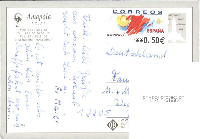 old postcard Cala Ratjada Mallorca Amapola Hotel Swimming Pool Strand postalisch gelaufen Erhaltung siehe scans