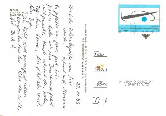 old postcard Cala Ratjada Mallorca Fliegeraufnahme postalisch gelaufen Erhaltung siehe scans [LiesaD40]