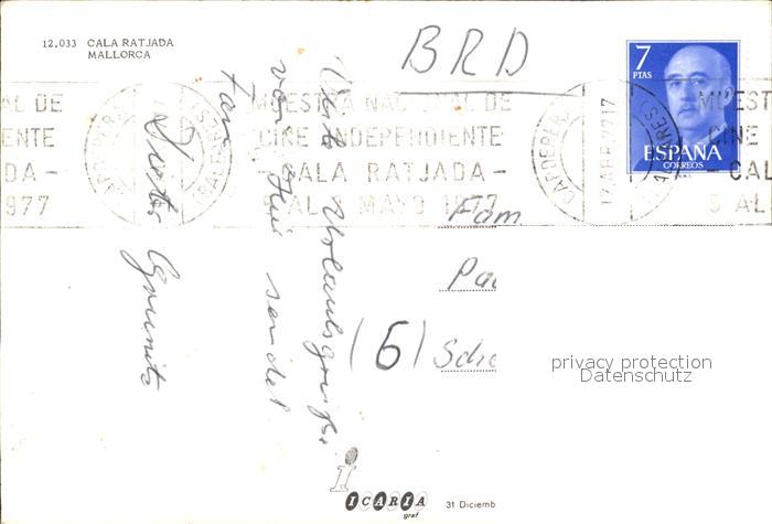 old postcard Cala Ratjada Mallorca Fliegeraufnahme postalisch gelaufen Erhaltung siehe scans [AndreD76]