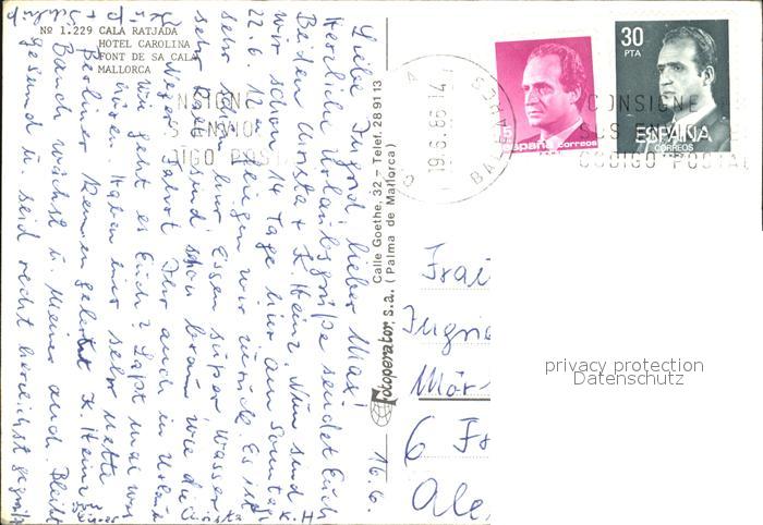 old postcard Cala Ratjada Mallorca Hotel Carolina postalisch gelaufen Erhaltung siehe scans