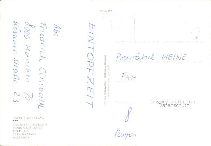 old postcard Cala Ratjada Mallorca Hotel Lago Playa Piscina Tennis Minigolf postalisch gelaufen Erhaltung siehe scans