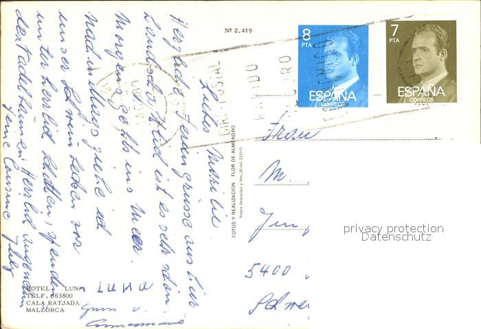 old postcard Cala Ratjada Mallorca Hotel Luna postalisch gelaufen Erhaltung siehe scans
