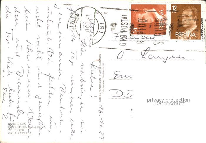 old postcard Cala Ratjada Mallorca Hotel Lux postalisch gelaufen Erhaltung siehe scans