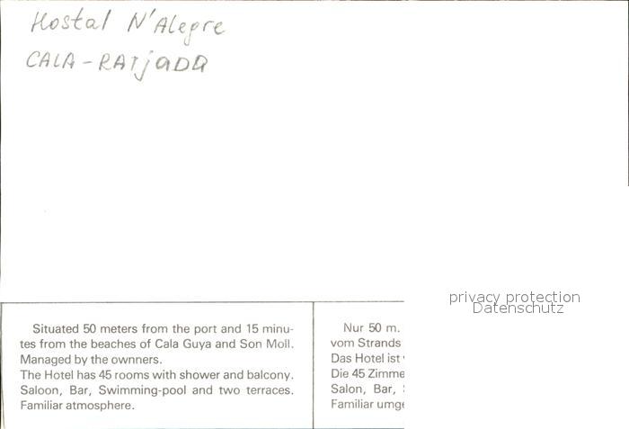 Cala Ratjada Mallorca Hotel N`Alegre Strand postalisch nicht gelaufen Erhaltung siehe scans