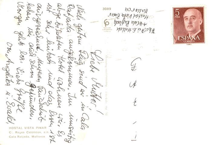 old postcard Cala Ratjada Mallorca Pension Vista Pinar Speisesaal Bar Zimmer Strand postalisch gelaufen Erhaltung siehe scans [FriedD77]