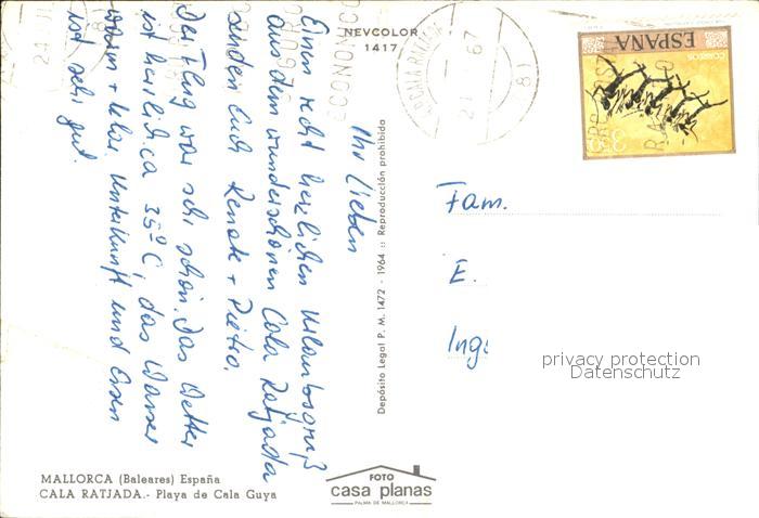 old postcard Cala Ratjada Mallorca Playa de Cala Guya Strand Brunnen postalisch gelaufen Erhaltung siehe scans