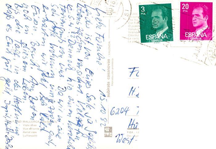 73904867 old postcard Cala Santanyi Mallorca ES Kueste Bucht postalisch gelaufen Fliegeraufnahme Erhaltung siehe scans [FriedD77] KatCode: 11510