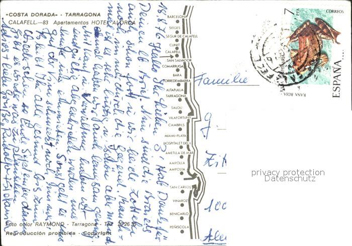 old postcard Calafell Apartamentos Hotel Alorda postalisch gelaufen Erhaltung siehe scans [WerneD78]