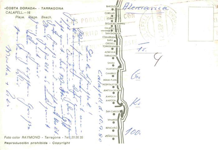 74014872 old postcard CALAFELL Cataluna ES Playa Fliegeraufnahme postalisch gelaufen Erhaltung siehe scans [WerneD78] KatCode: 11510