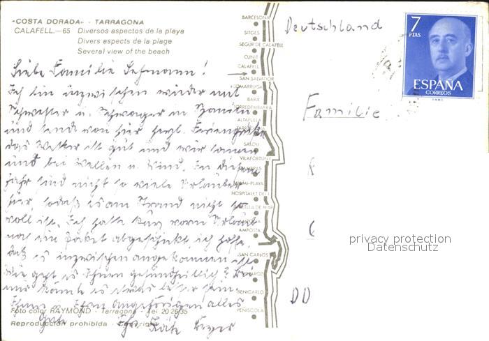 old postcard Calafell Diversos aspectos de la playa postalisch gelaufen Erhaltung siehe scans [WerneD78 kt116box]