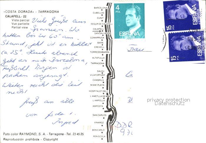 old postcard Calafell Fliegeraufnahme postalisch gelaufen Erhaltung siehe scans