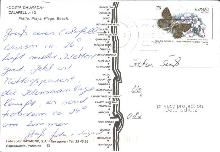 old postcard Calafell Strand postalisch gelaufen Erhaltung siehe scans